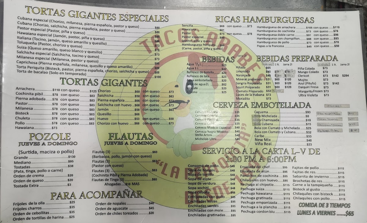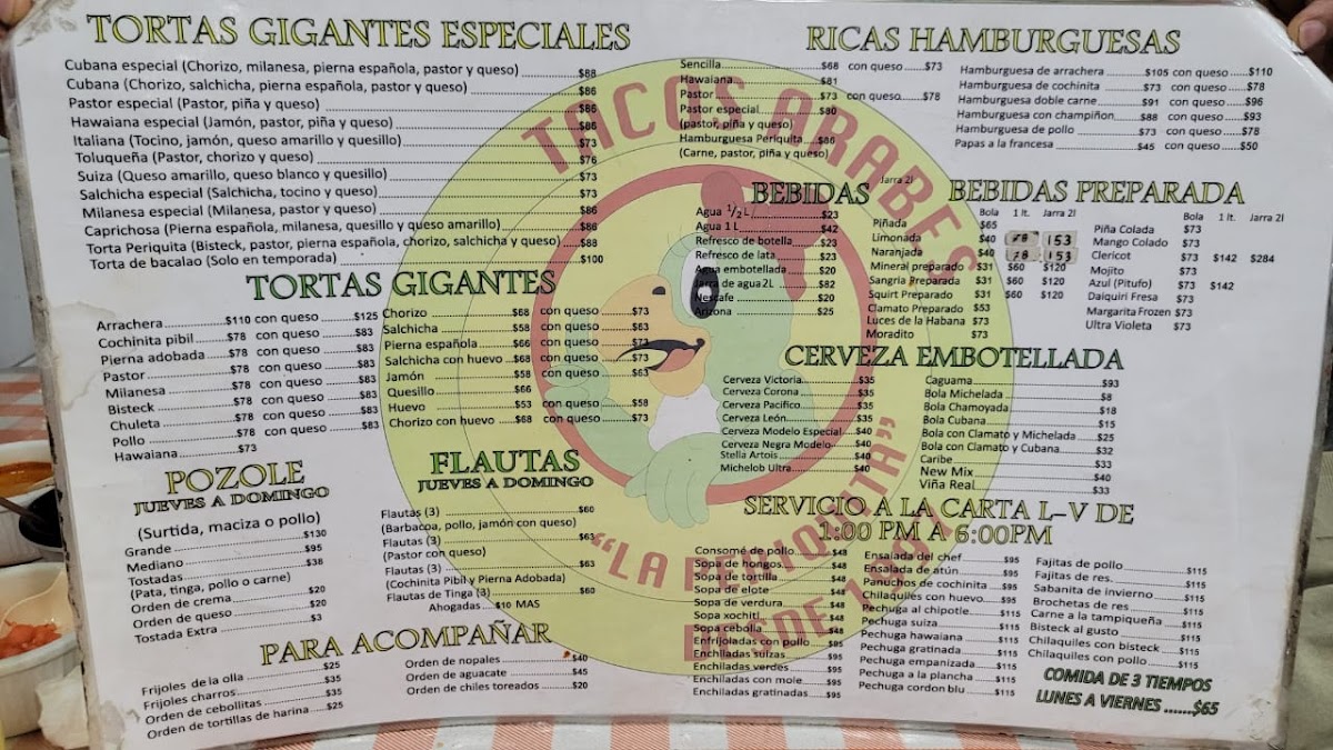At La Periquita - Tacos Árabes, situated in the heart of Cuauhtémoc, you’ll find an enticing menu that celebrates the rich tapestry of traditional Mexican flavors. This cozy eatery features a variety of tacos, with standout options like the tantalizing tacos al pastor, offering a perfect harmony of savory meat and fresh toppings. Customers rave about the tortas especiales, especially when layered with cheese, jalapeños, and pineapple, embodying a delightful fusion of flavors.
